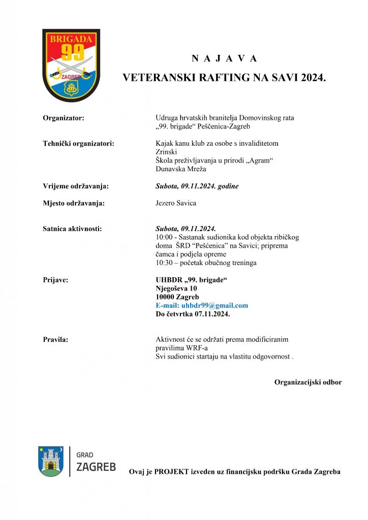 Obučni treninzi će se održati na Jarunu 26.10.2024. i na Savici 09.11.2024. Na obučnim treninzima će voditelji održavati edukacije o pravilima ponašanja u čamcu tijekom spuštanja te o teoretskom i praktičnom segmentu rafting sporta. Također će izvoditi pokazne vježbe spašavanja iz vode.