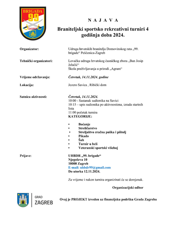 Pozivamo vas na 2. turnir projekta „ Braniteljski sportsko rekreativni turniri 4 godišnja doba 2024. “ koji će se održati u četvrtak, 14.11.2024. godine.